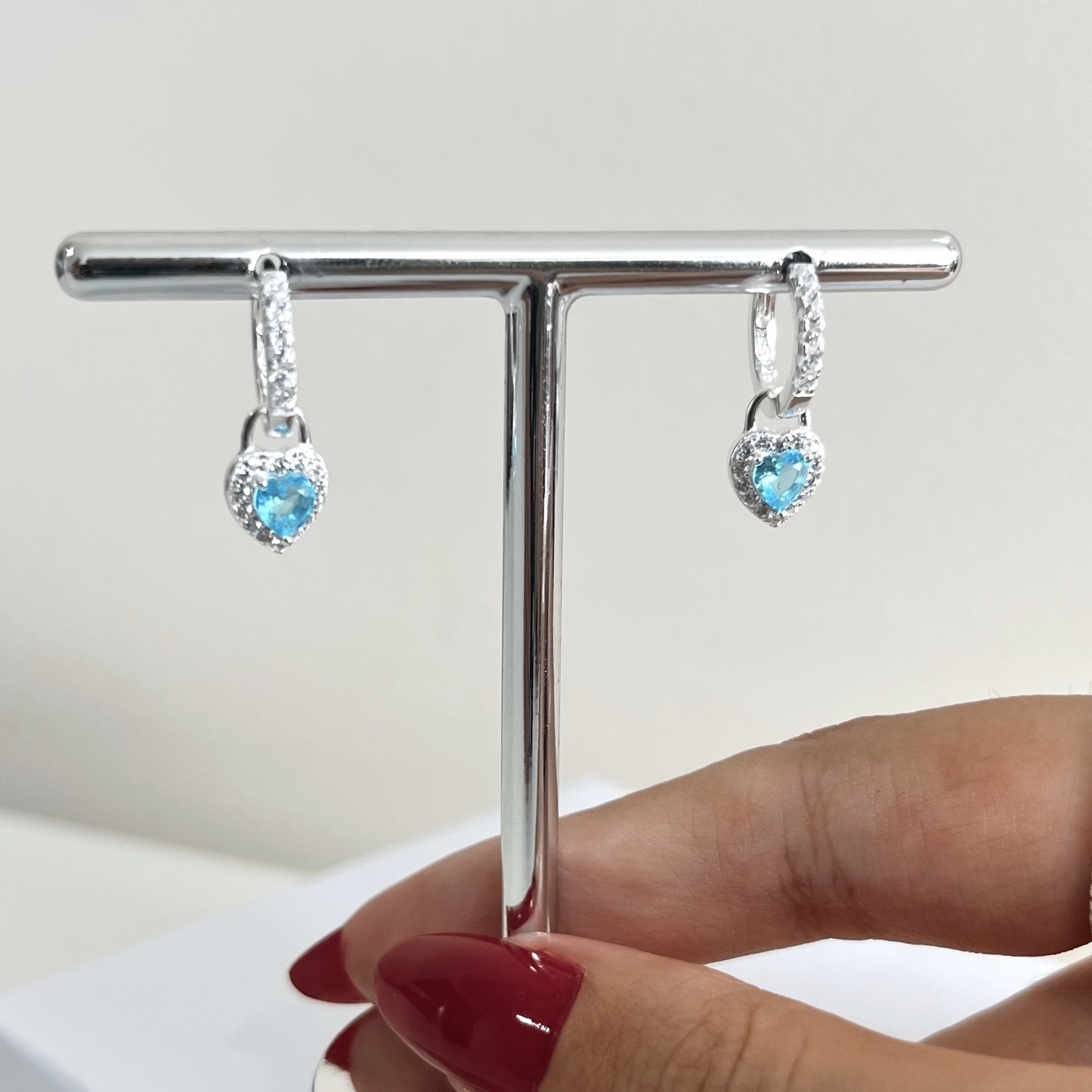 Argola de Prata Articulada Cravejada Coração Azul Bebê