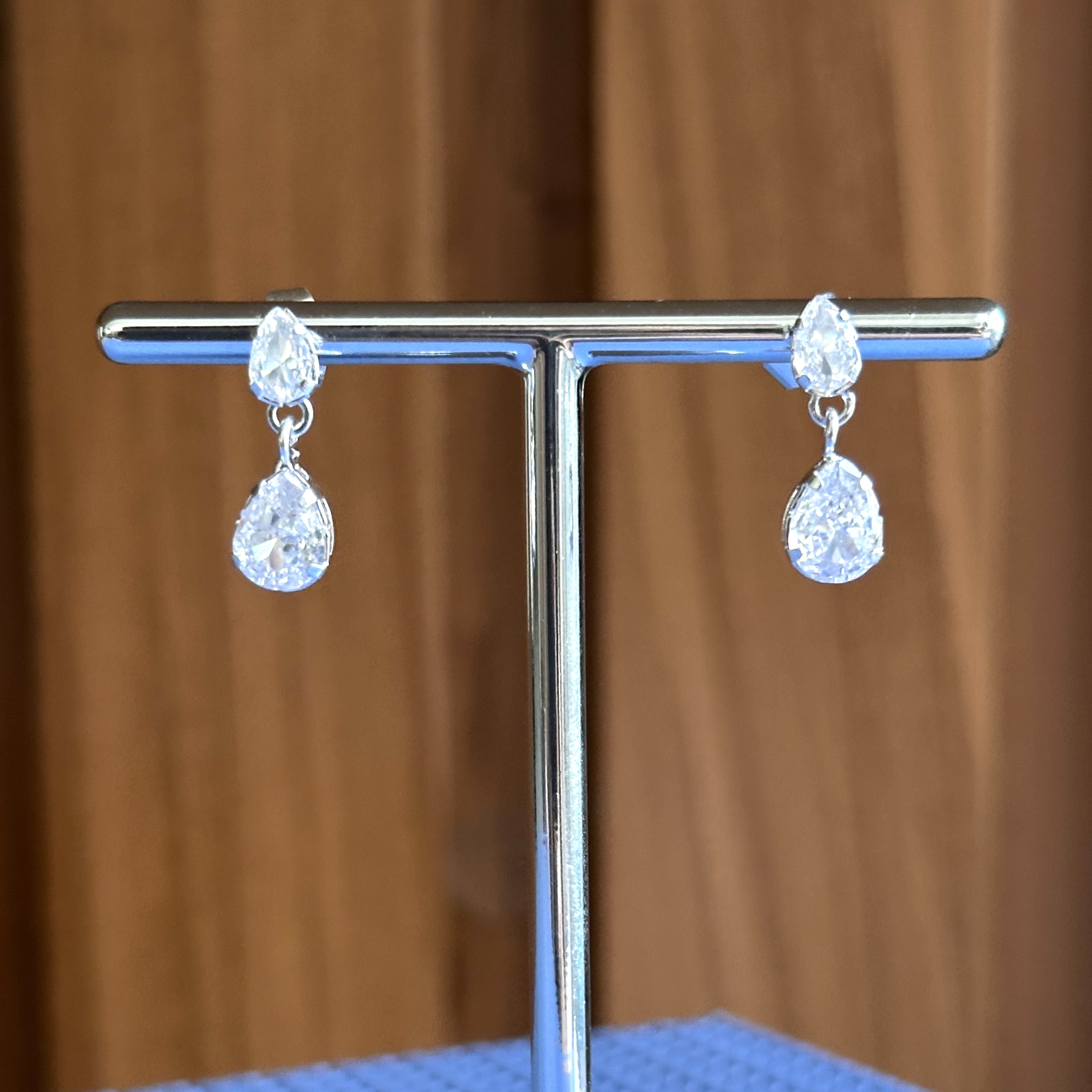 Brinco de Prata Gota Dupla Zircônia