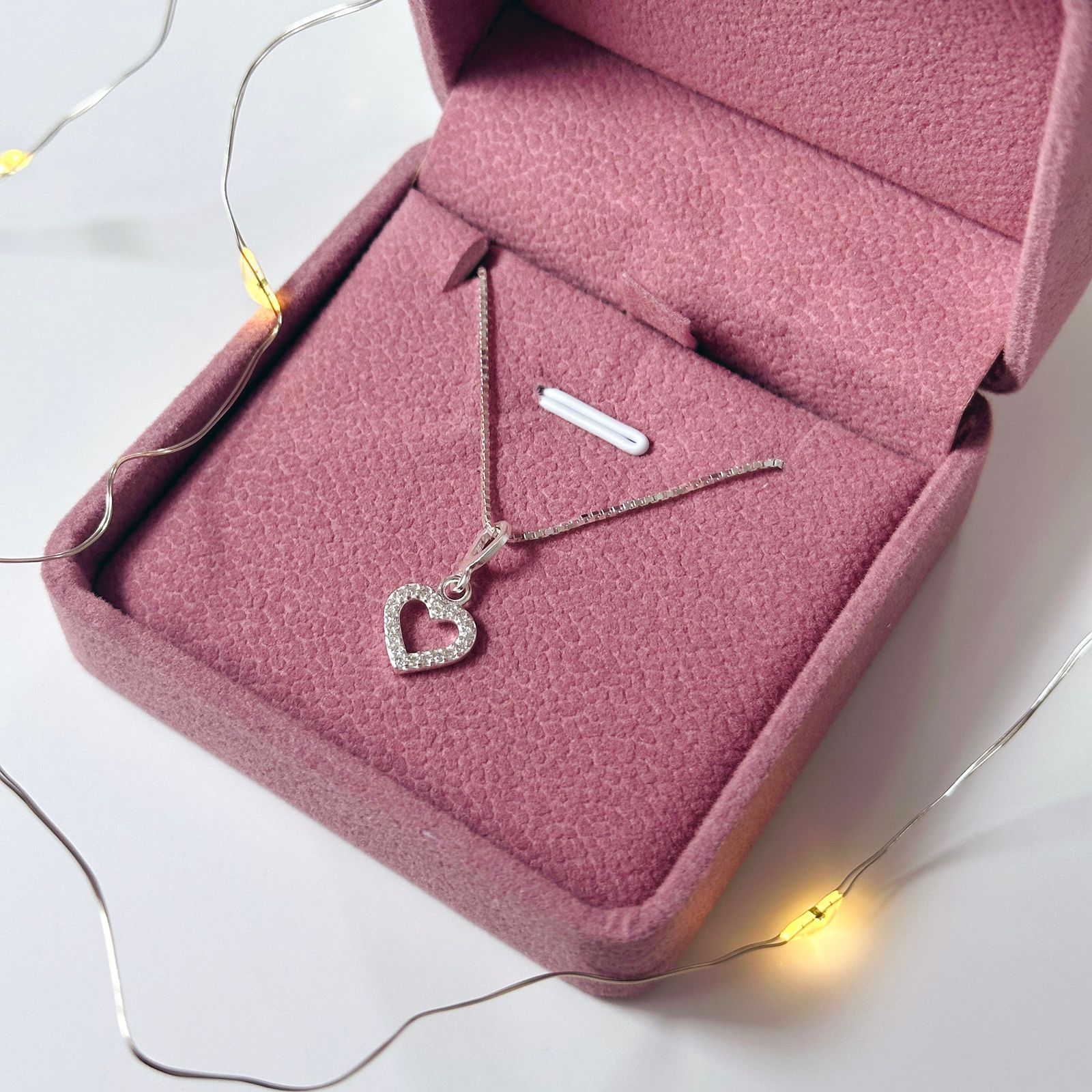 Colar de Prata Coração Vazado Cravejado 45 cm