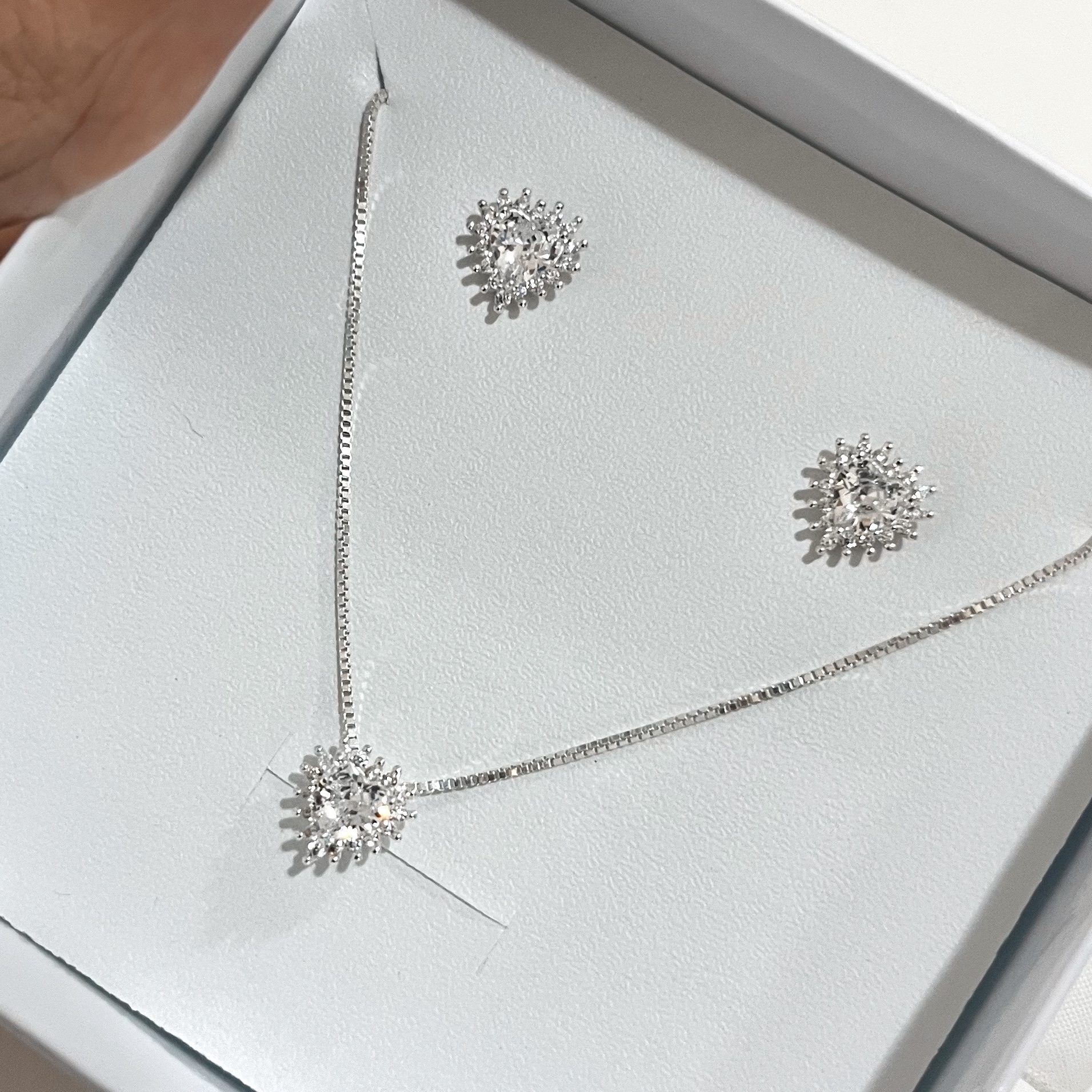 Conjunto de Prata Coração Cravejado Cristal 40 cm
