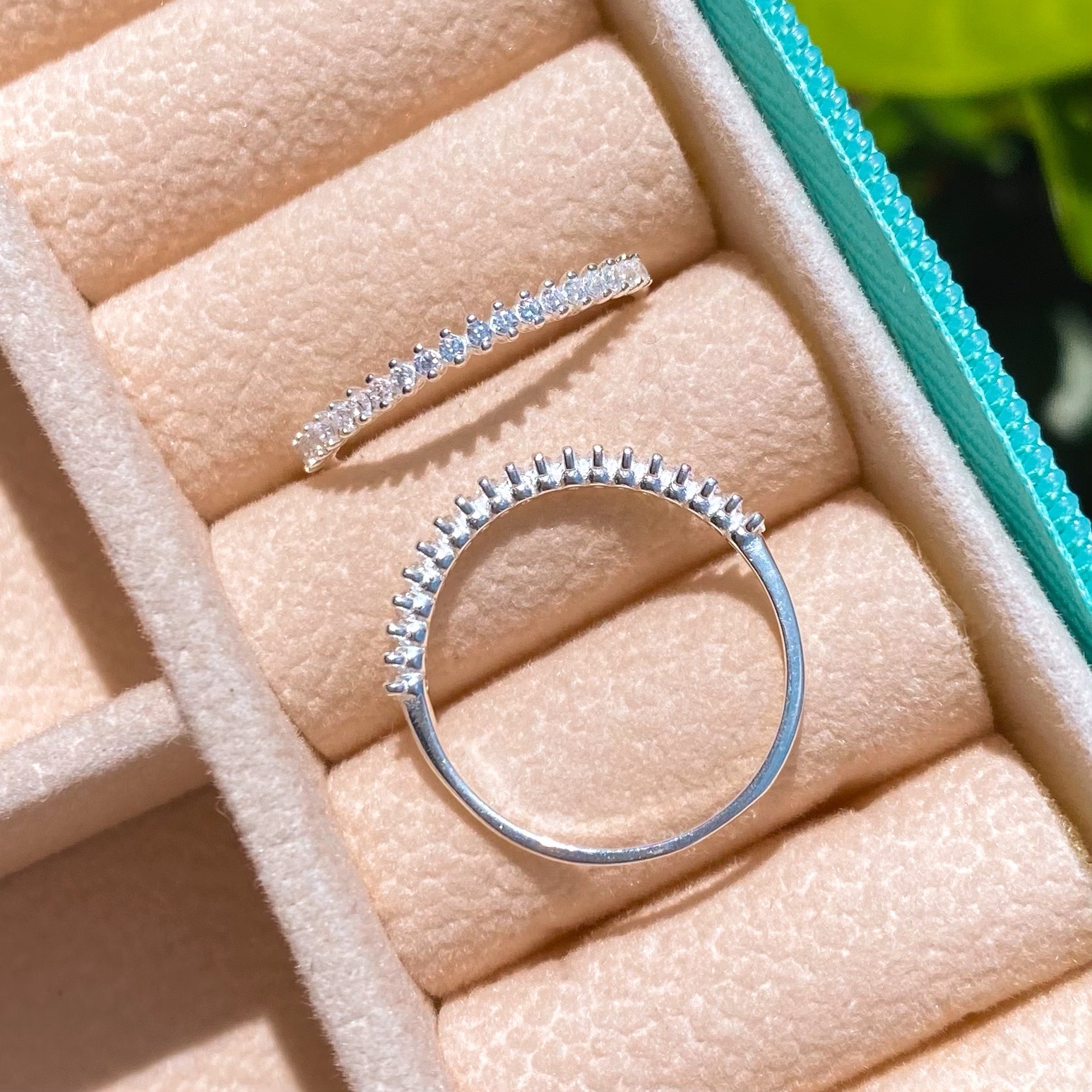 Meia Aliança de Prata Transparente