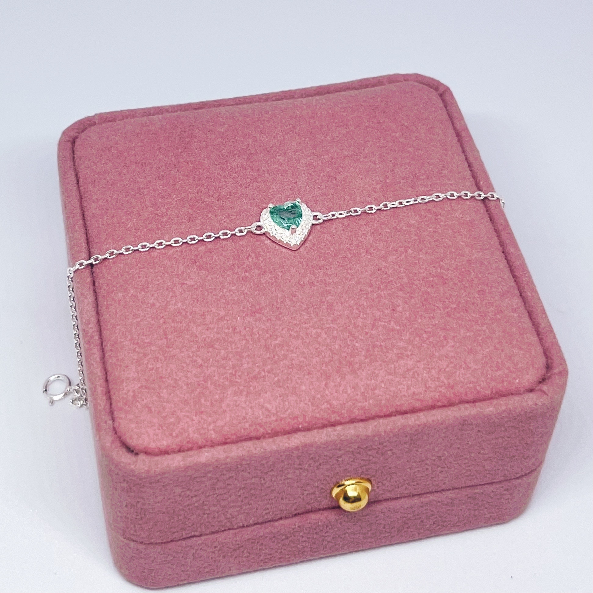 Pulseira de Prata Coração Turquesa Contorno Cravejado