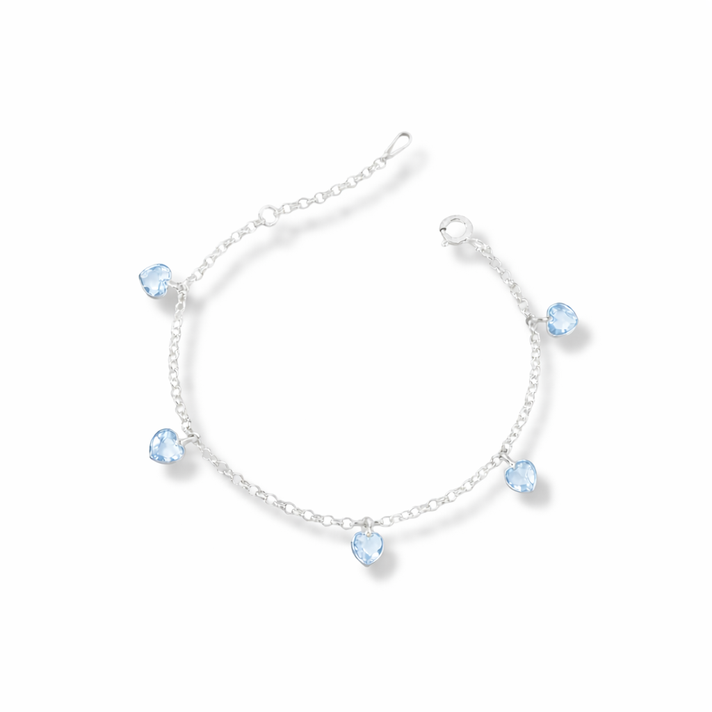 Pulseira de Prata Corações Azuis Espaçados