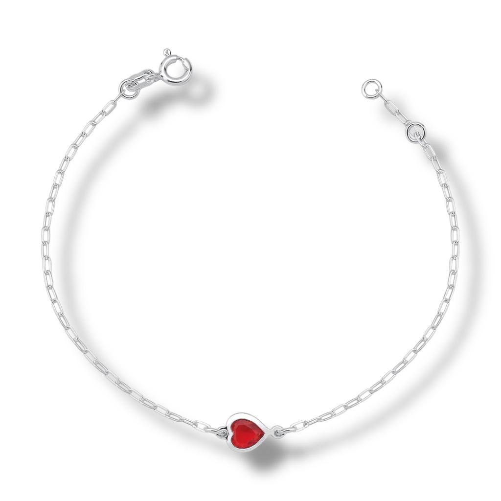 Pulseira de Prata Ponto de Luz Coração Vermelho
