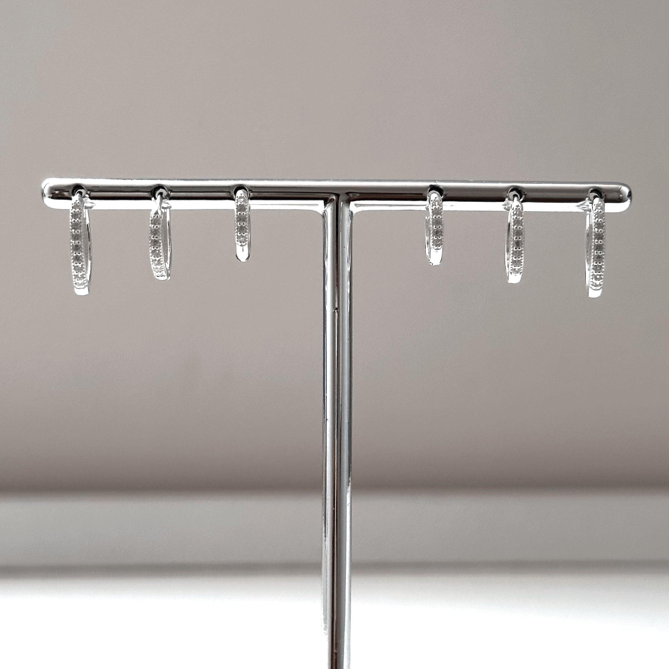Trio de Argolas Articuladas de Prata Cravejadas